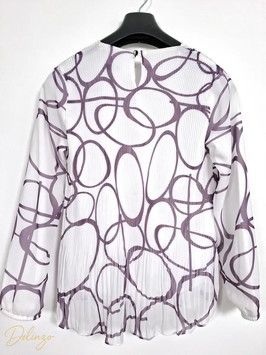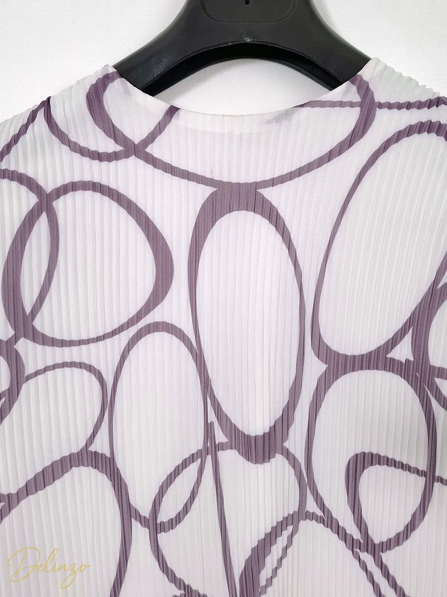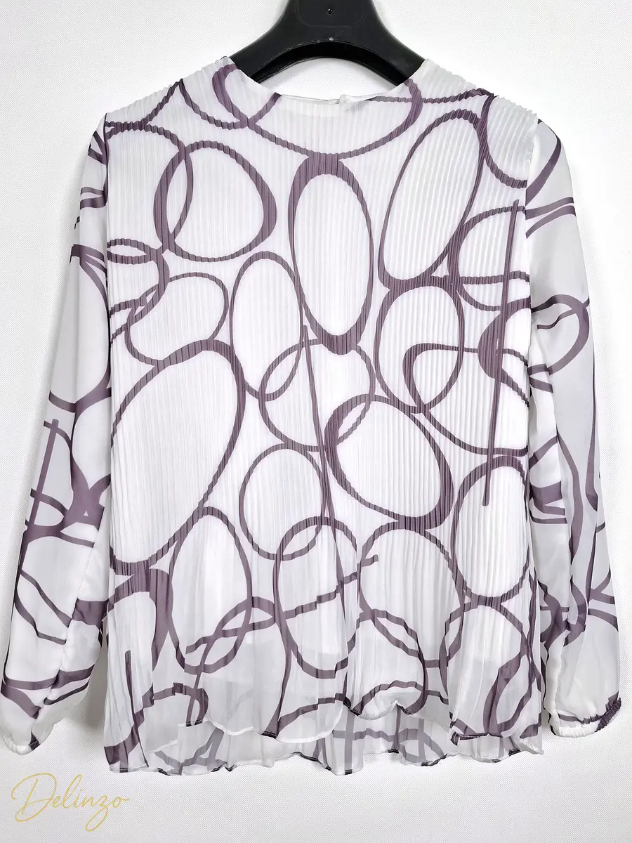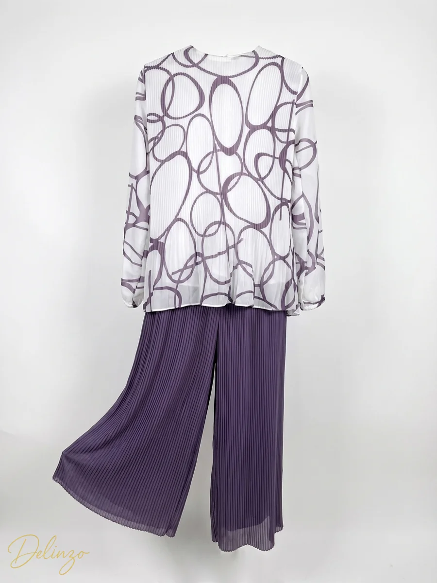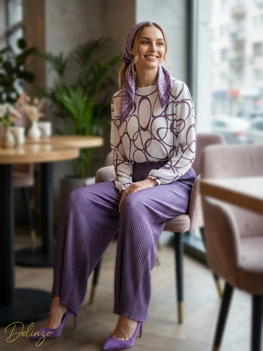 ست بلوز آستین بلند پلیسهریز با طرح آبستره و دامنشلواری گشاد پلیسه، انتخابی لخت و شیک برای مهمانیها.