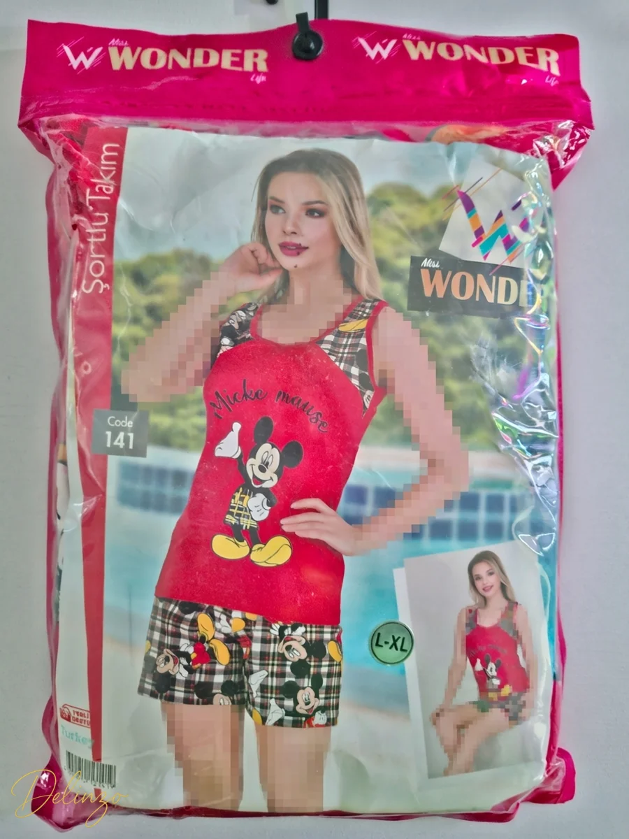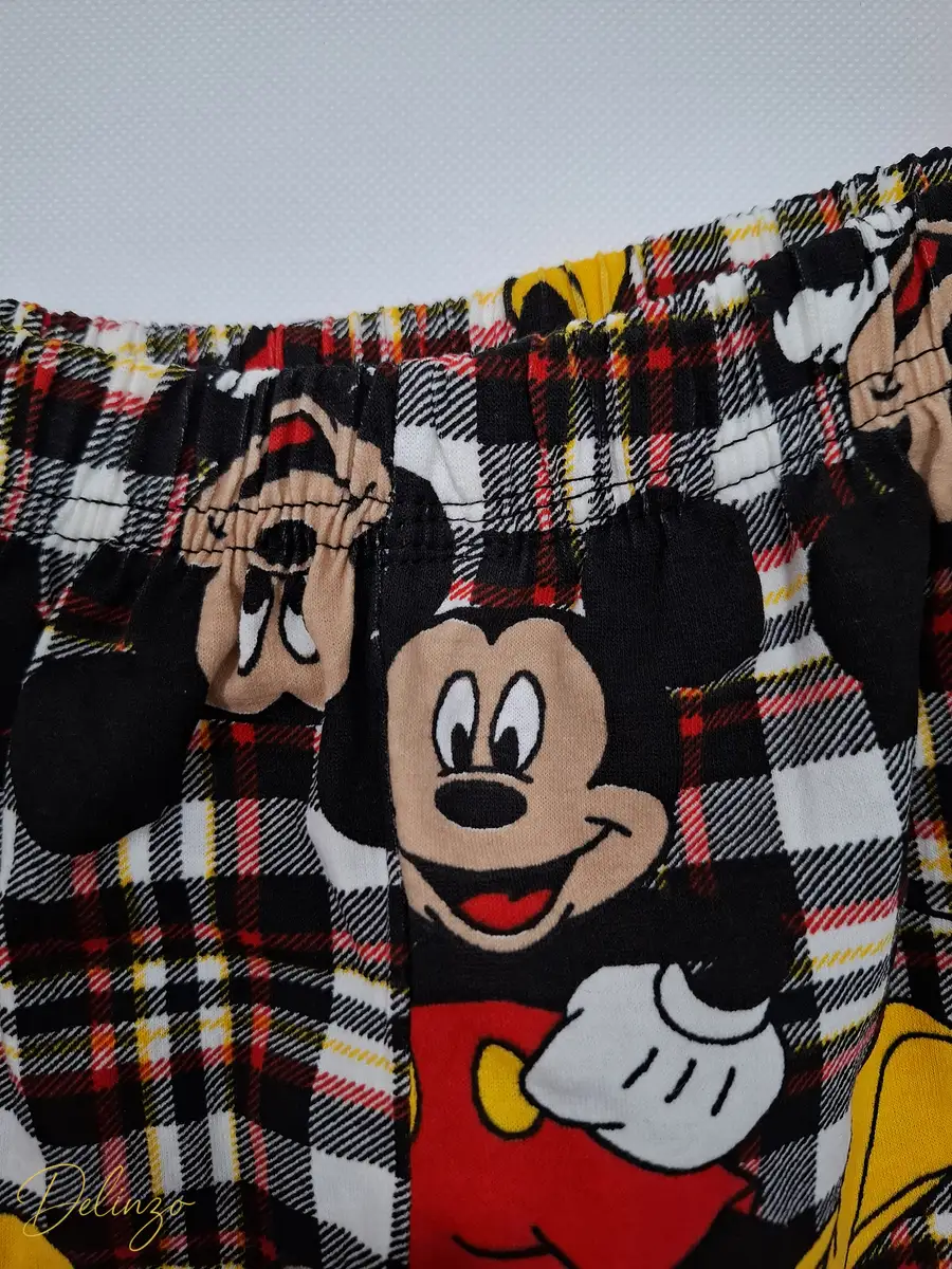 این ست دو تکه راحتی شامل یک تاپ رکابی یقهگرد و یک شورتک کمرکشی است که انتخابی عالی برای استفاده در منزل یا فصول گرم سال میباشد. جنس این ست ترکیبی با درصد بالای پنبه (۹۵٪) و الاستین (۵٪) است که نرمی، خنکی و قابلیت کشسانی مناسبی را برای آزادی حرکت فراهم میکند و بسیار سبک و راحت است. تاپ این ست دارای یک چاپ گرافیکی بزرگ از شخصیت میکی ماوس در مرکز است، در حالی که بخش سرشانه و شورتک دارای طرح چهارخانه (یا شطرنجی) با الگوهای کوچک تکرارشونده از شخصیتهای کارتونی هستند که تضاد بصری جذاب و فانتزی ایجاد کرده است. شورتک دارای کمر کشی برای فیت آسان و راحت است.