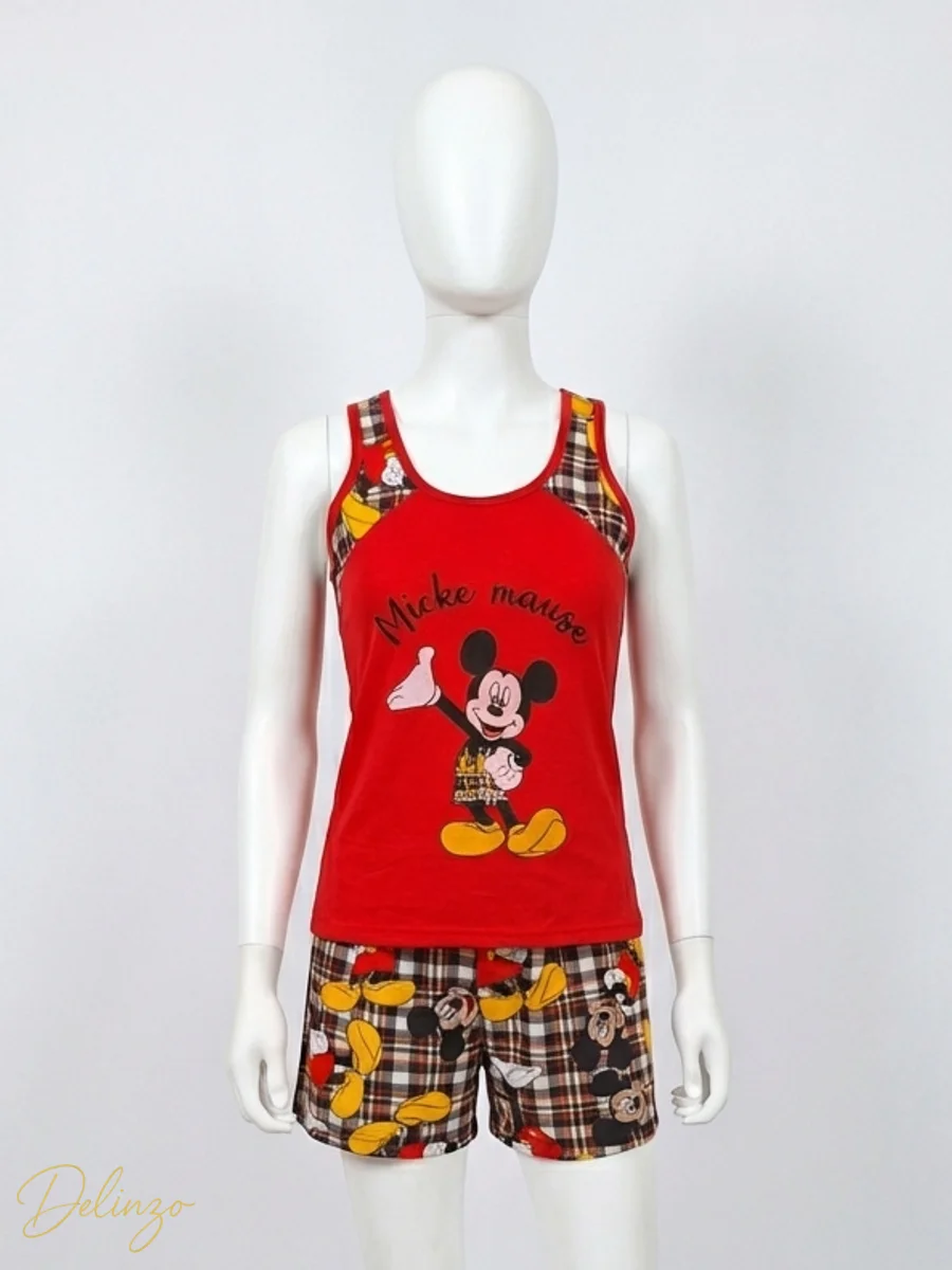 ست تاپ رکابی و شورتک نخی و کشی، با پارچه سبک و خنک و طرح جذاب و فانتزی میکی ماوس.
