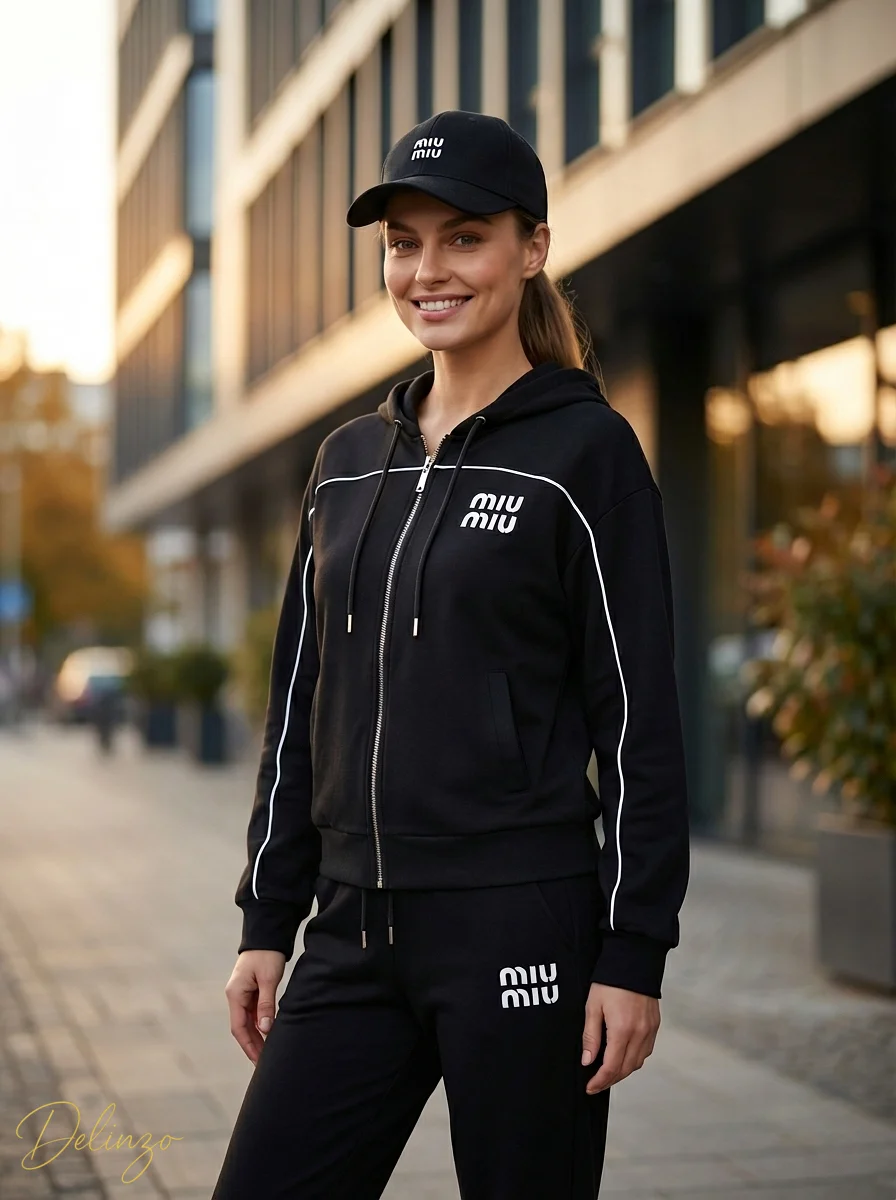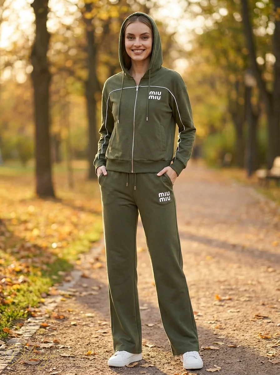ست سویشرت زیپدار و شلوار زنانه ترک طرح MIU MIU