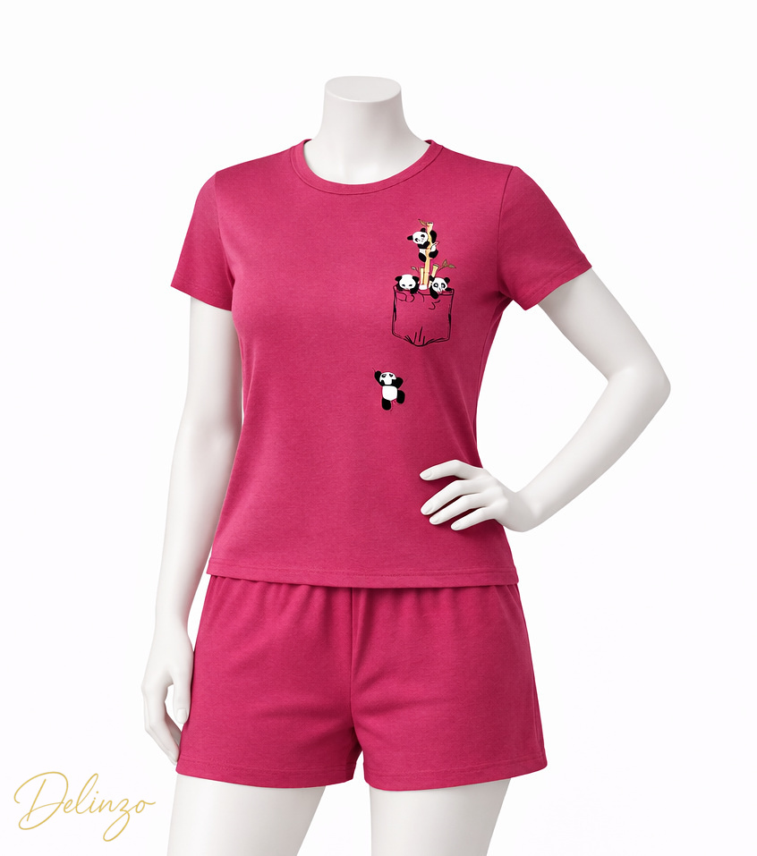 ست تیشرت و شورتک زنانه MYBEN طرح فانتزی پاندا